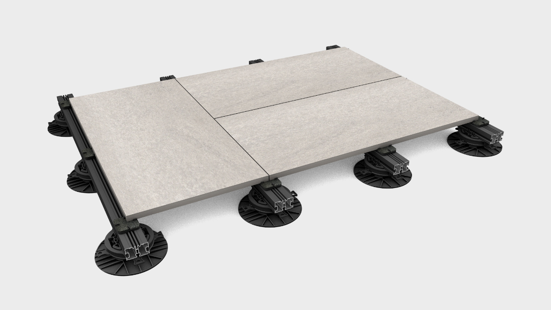 Conçue avec une rigidité optimale, la structure garantit une parfaite tenue des dalles, quelles que soient leurs dimensions ou leur poids. Grâce à des accessoires ingénieusement développés, chaque dalle reste parfaitement en place, sans vibration ni jeu, pour un résultat stable et durable.